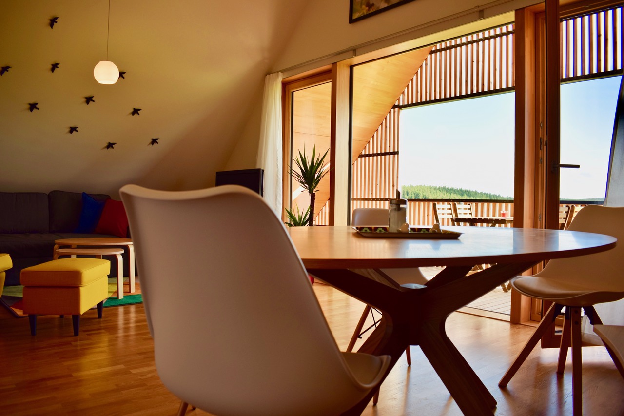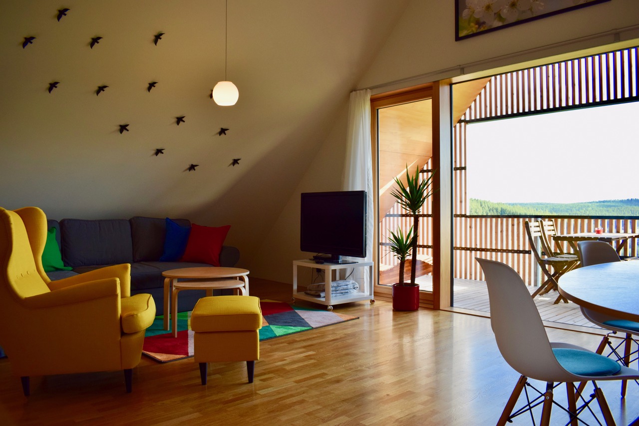 Die Ferienwohnung ist ca. 90qm groß und eignet sich ideal für maximal 4 Personen. Die Wohnung liegt im Dachgeschoss und verfügt über zwei separate Schlafzimmer mit einem Doppelbett bzw. zwei Einzelbetten, einem Wohnzimmer, eine voll ausgestattete Einbauküche und über Badezimmer mit Dusche und WC. Zum Wohnzimmer gehört noch ein gemütlicher Essbereich. Auf dem großen, überdachten Balkon können Sie nach einem erlebnisreichen Tag entspannen.